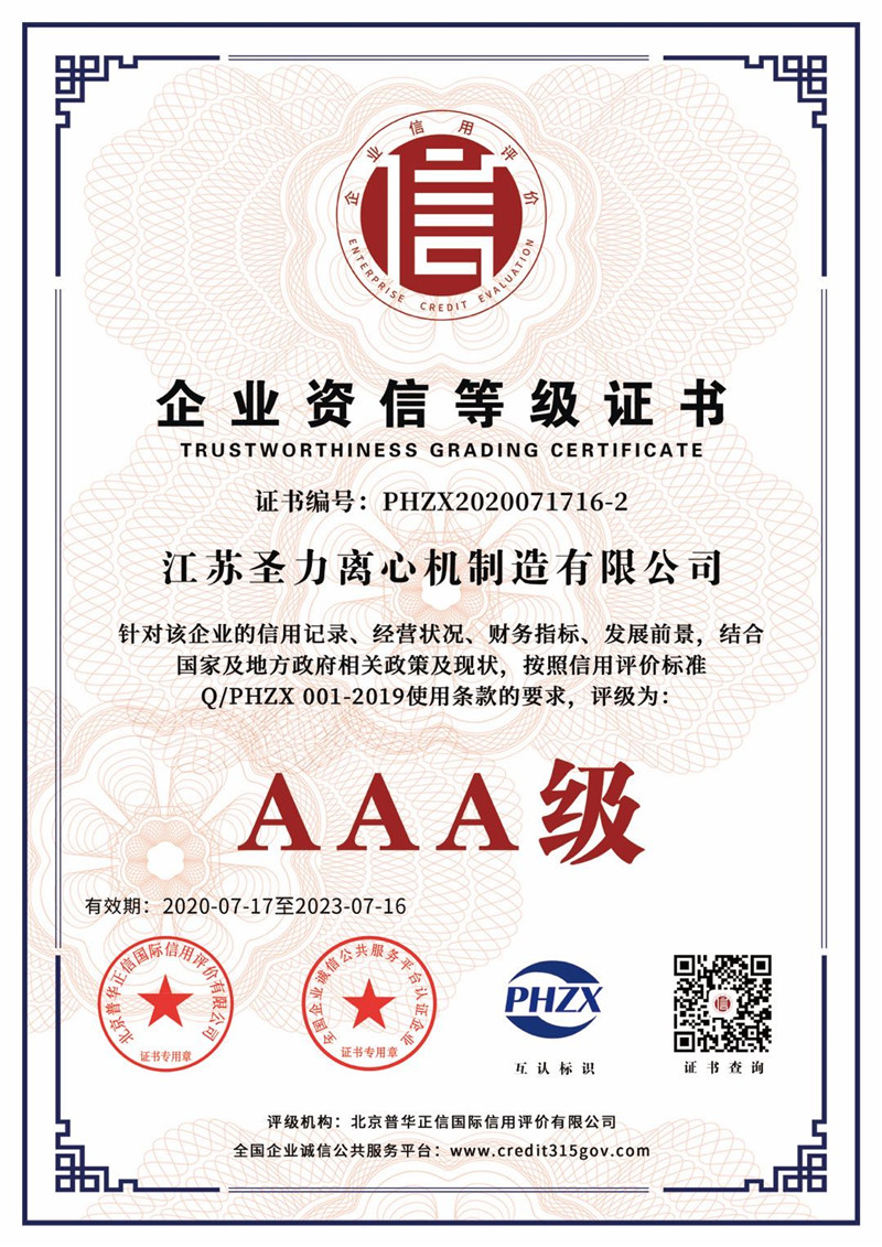 江蘇圣力離心機制造有限公司是國內分離機械行業(yè)中主要的離心機生產(chǎn)企業(yè),對離心機的研究、設計、制造有多年的歷史,擁有齊全的設備、完善的檢測手段。公司已通過IS09000國際質量體系認證、ISO14001環(huán)境管理體系認證、ISO45001:2018職業(yè)健康安全管理體系認證和CE認證,是江蘇省高新技術企業(yè),曾榮獲國家和地方多項榮譽稱號。